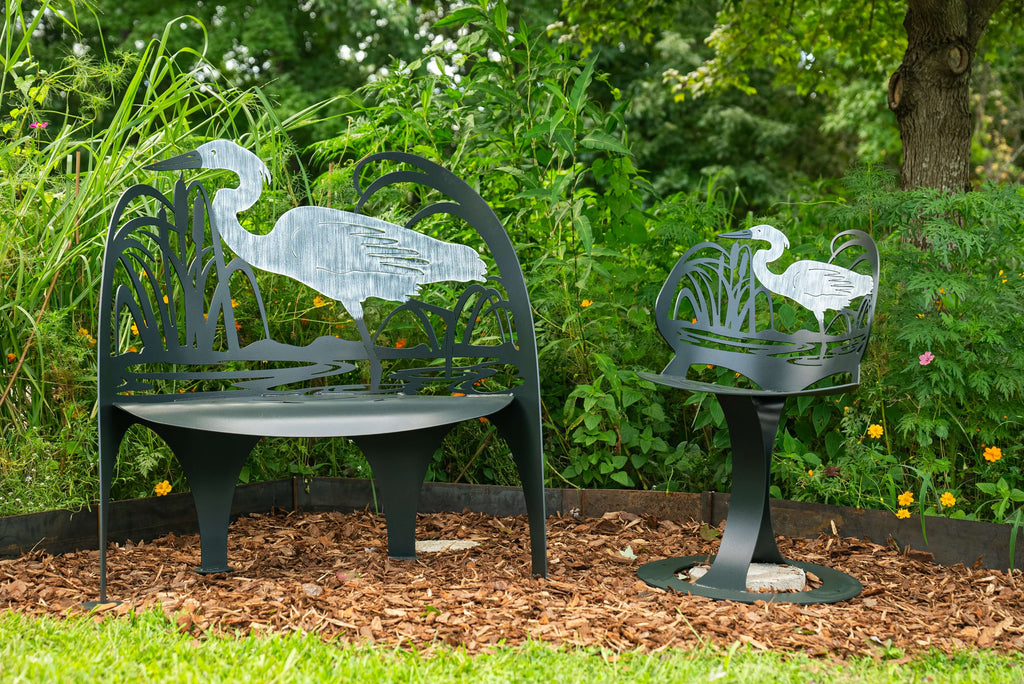Sculptural and symbolic, it brings the calm of the marshlands into gardens, patios, or parks, all while being forged to endure season after season.