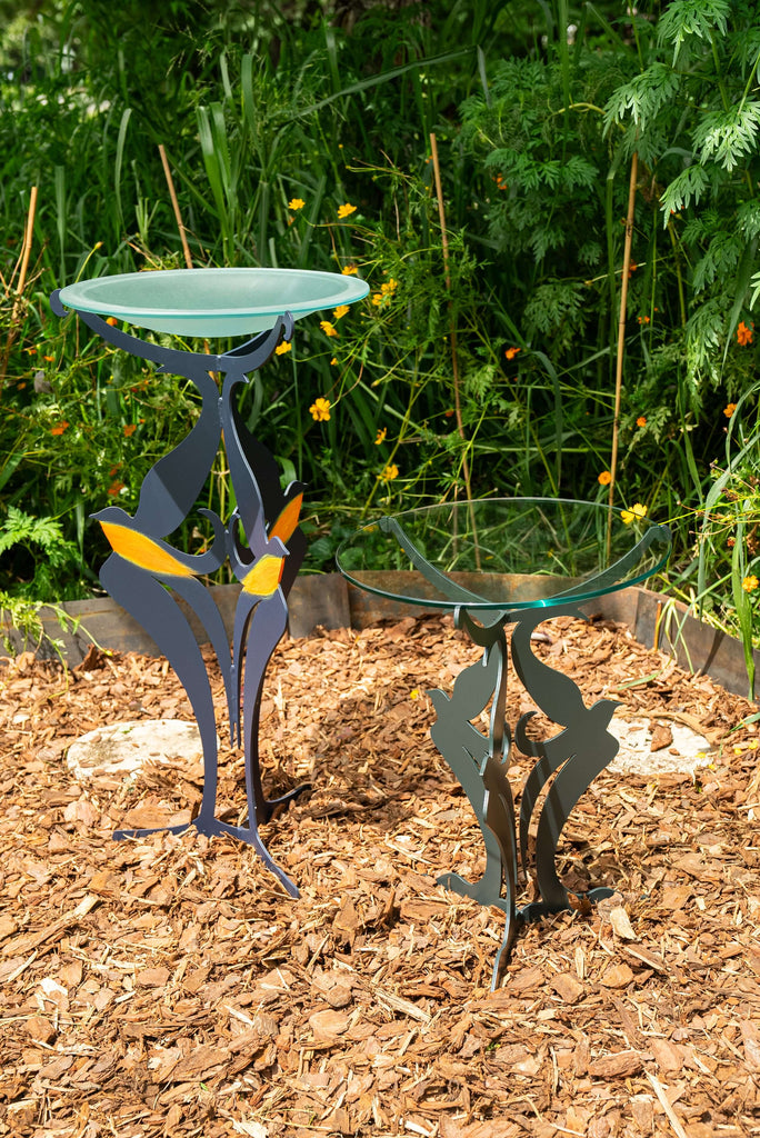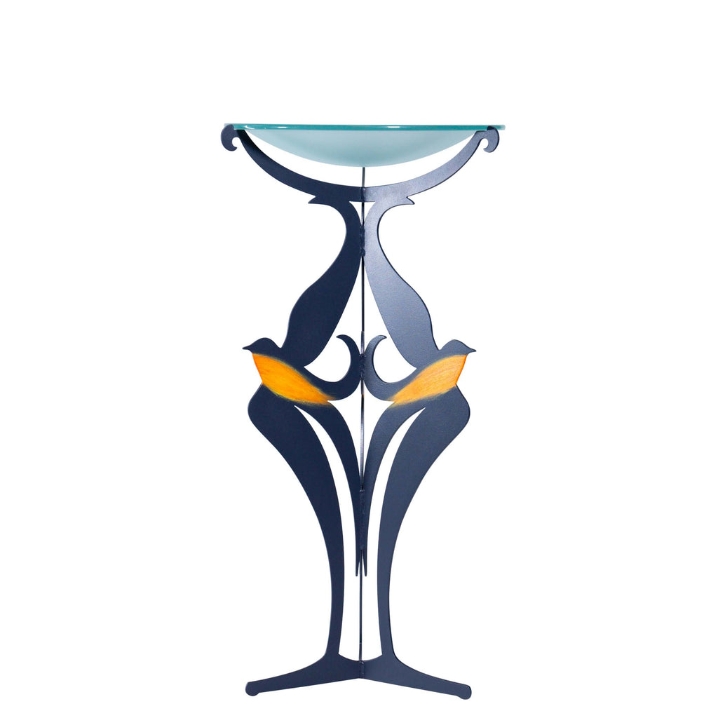 Traditional swallow bird table, available in standard side table or pedestal height. Pedestal can be paired with either a frosted glass bowl or a clear glass top.