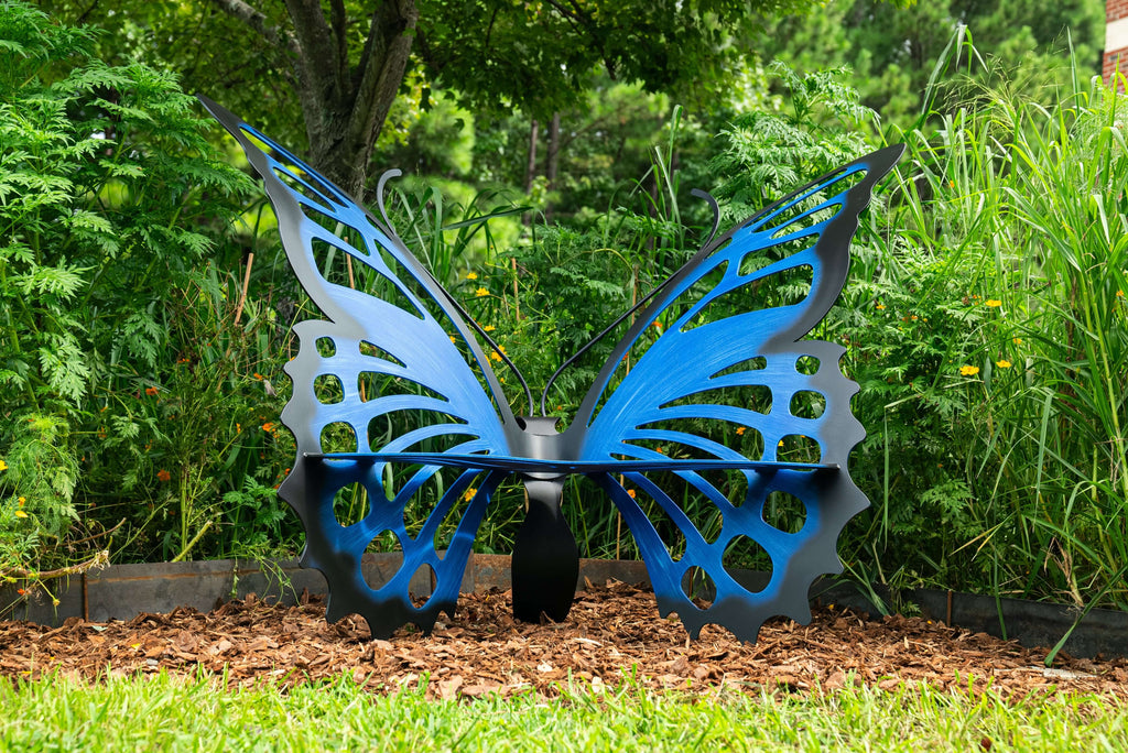As Cricket Forge’s original and best-selling design, this one-of-a-kind steel bench has become a symbol of strength, transformation, and beauty in motion. Crafted from heavy-gauge steel and finished to weather the elements, the Butterfly Bench is more than a place to sit—it’s a piece of sculpture built to last generations. Its sweeping wings and solid frame invite stillness, reflection, and connection—whether placed in a garden, park, porch, or public space. Each bench is welded, shaped, and finished by hand in Durham, NC—proof that hardworking craftsmanship can be both striking and steadfast. Made to anchor a space. Built to stand the test of time.